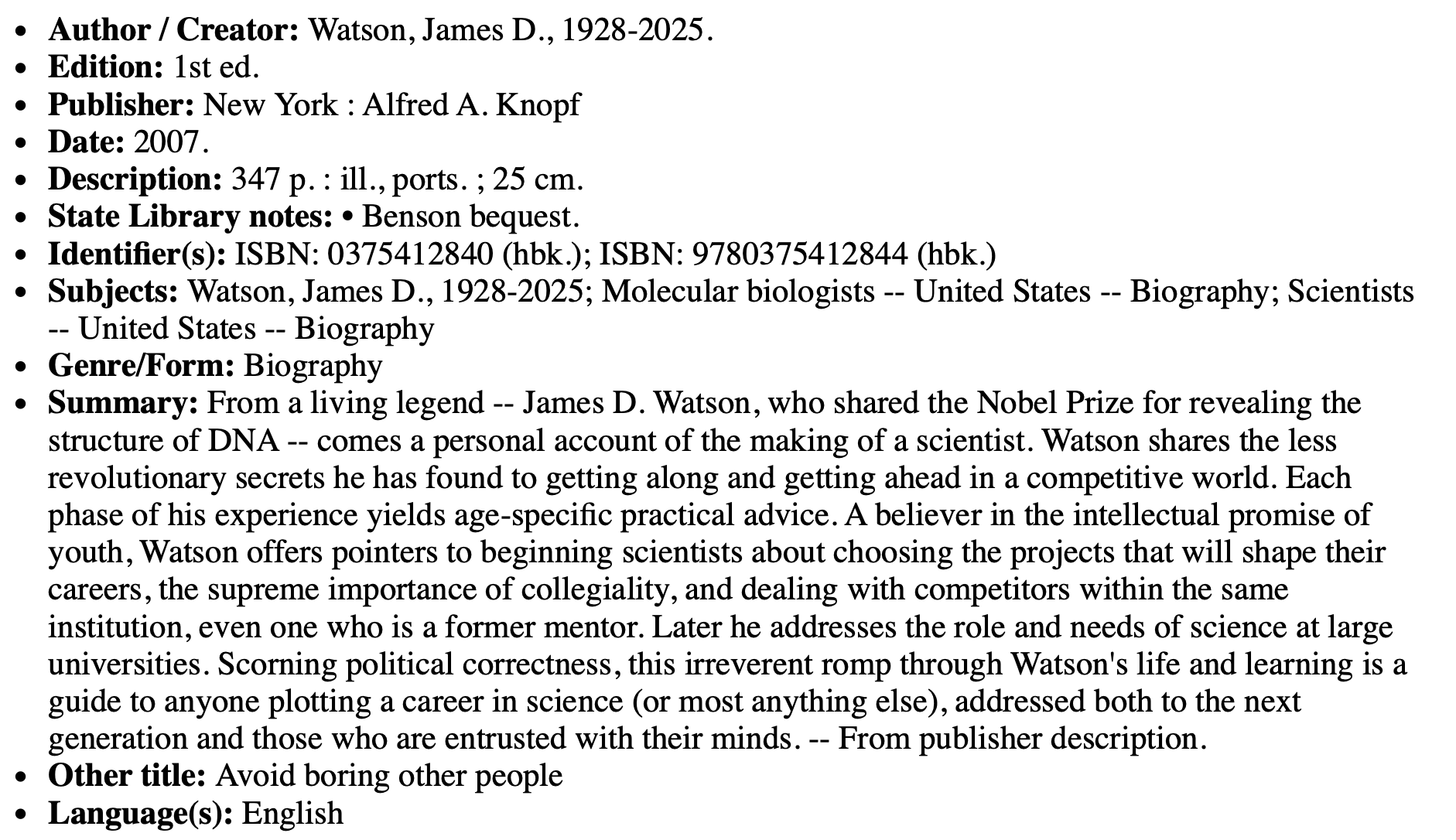 “Avoid boring people: lessons from a life in science”